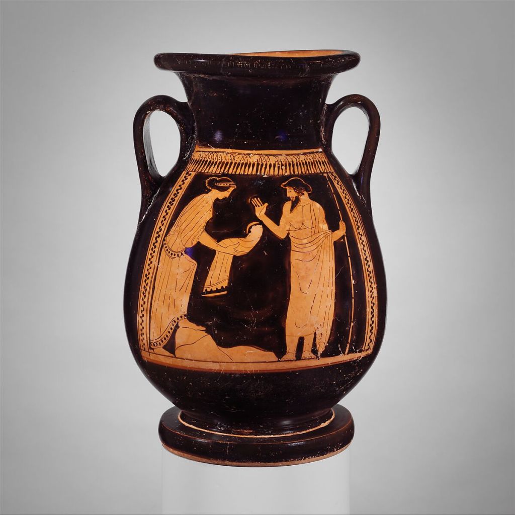 Crono, Rhea e la pietra dell’inganno. Pelike attica a f.r., V a.C. Metropolitan Museum of Art.